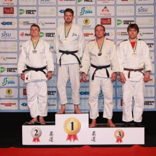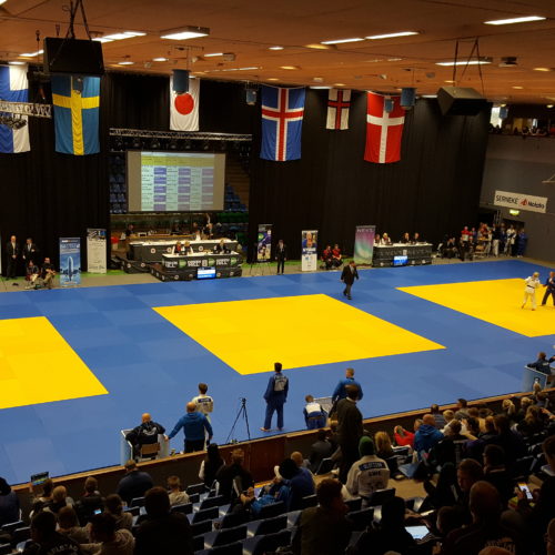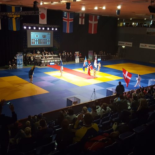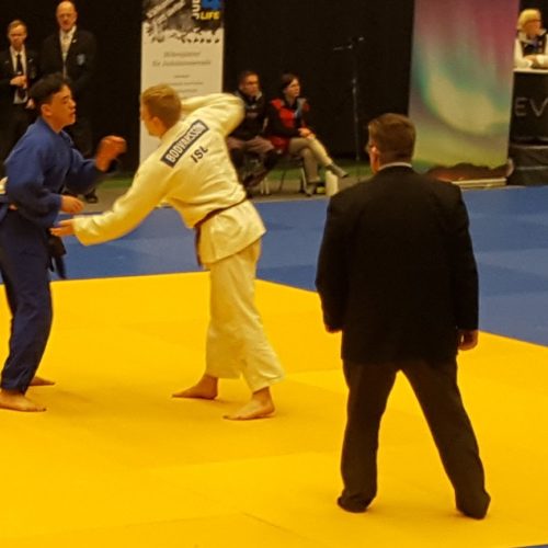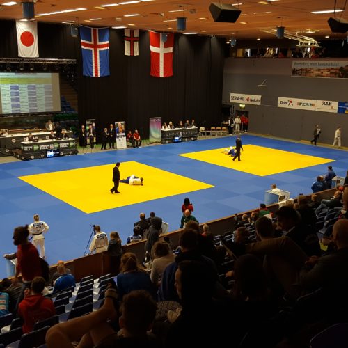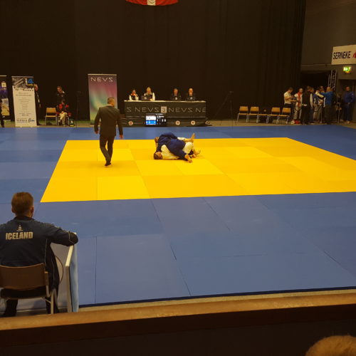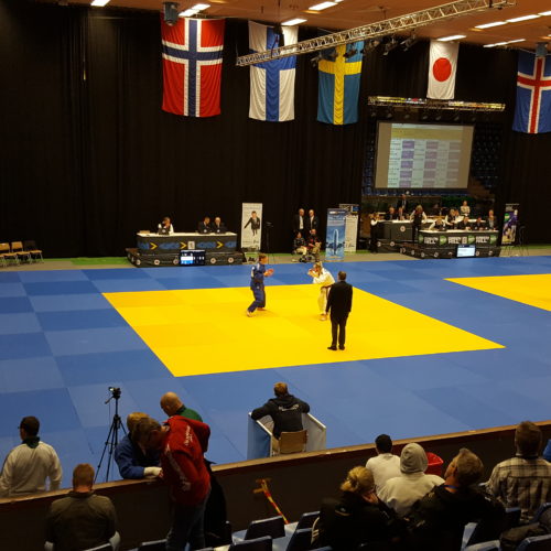 Norðurlandamótið fór fram í Trollhattan í Svíþjóð dagana 13-14 maí. Jón Þór Þórarinsson landsliðsþjálfari valdi sextán manna landsliðashóp til kepppni þar en auk þess tóku þátt fimm keppendur sem fóru á eigin vegum eða síns félags. JSÍ sendi einnig tvo dómara þá Björn Sigurðarson og Sævar Sigursteinsson sem stóðu sig afar en þeir dæmdu einnig á NM 2016 í Noregi og eru þeir orðnir vel sjóaðir af mótum af þessari stærðargráðu. Mótið sjálft var vel skipulagt og öll umgjörð til fyrirmyndar en tímasetningar fóru alveg úr skorðum. Keppnin fyrri daginn átti að hefjast kl. 8 og ljúka kl. 19 en henni var ekki lokið fyrr en 22:30 og voru menn alveg búnir á því. Seinni keppnisdagurinn var ekkert betri og urðum við að fara áður en verðlaunaafhending byrjaði til að ná flugi svo flestir okkar keppenda sem unnu til verðlauna þennan daginn fengu þau afhent óformlega og svo var þotið í rútuna. Þrátt fyrir þetta var árangur keppanda okkar flottur og uppskáru þeir fjögur gull, þrjú silfur og þrjú brons verðlaun auk þess að verða í 5. og 7. sæti. Þeir sem unnu til gullverðlauna voru, Anna Soffía Víkingsdóttir í -78 kg flokki kvenna og -78 kg veterans, Þormóður Jónsson í +100 kg flokki karla og Grímur Ívarsson U21 árs -100 kg. Silfurverðlaun fengu Egill Blöndal -90 kg karla, Janusz Komendera í -66 kg veterans og Alexander Heiðarsson í U18 -55 kg. Bronsverðlaun fengu svo Grímur Ívarsson í -100 kg karla, Ari Sigfússon í -100 kg veterans og Alexander Heiðarsson í U21 -55 kg en hér eru úrslitin og nokkrar myndir frá keppninni.