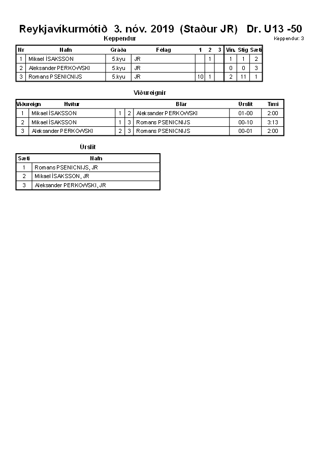 Reykjavíkurmótið 3. nóv. 2019 (Staður JR)