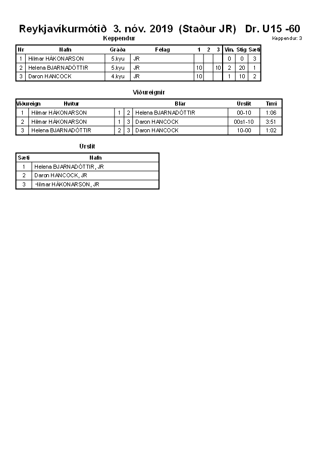 Reykjavíkurmótið 3. nóv. 2019 (Staður JR)