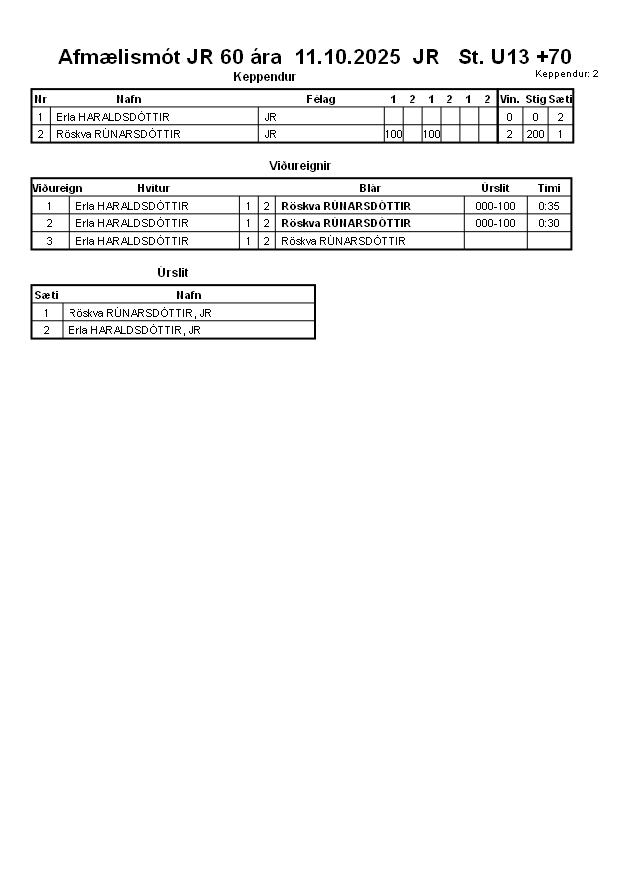 Afmælismót JR 60 ára 11.10.2025 JR