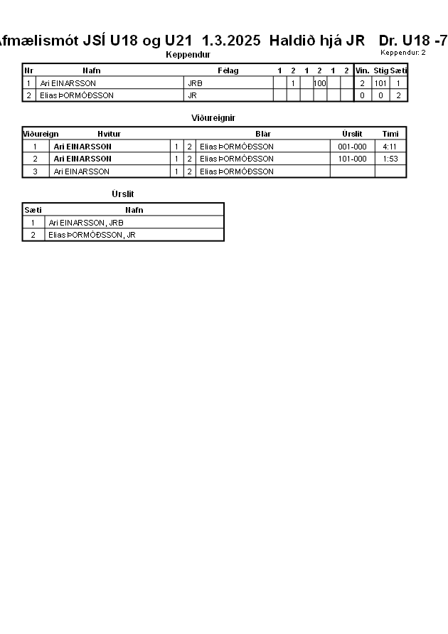 Afmælismót JSÍ U18 og U21 1.3.2025 Haldið hjá JR