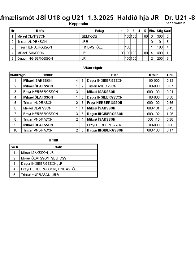 Afmælismót JSÍ U18 og U21 1.3.2025 Haldið hjá JR