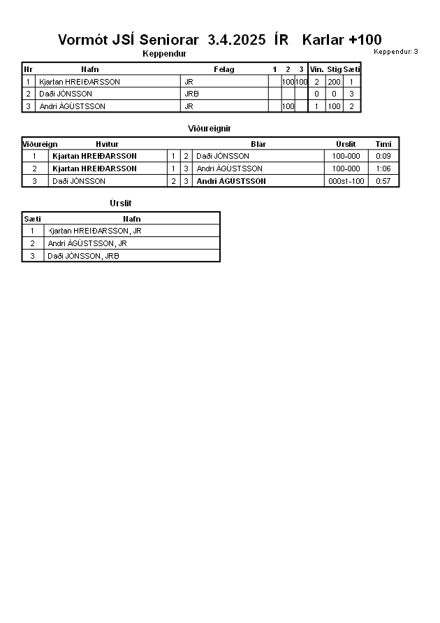 Vormót JSÍ Seniorar 3.4.2025 ÍR