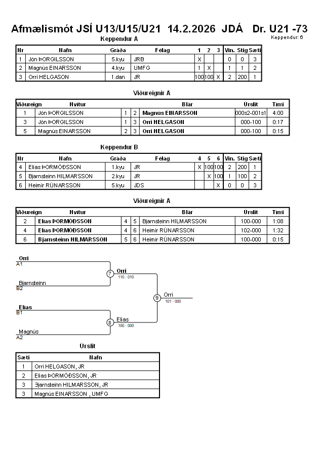 Afmælismót JSÍ U13/U15/U21 14.2.2026 JDÁ
